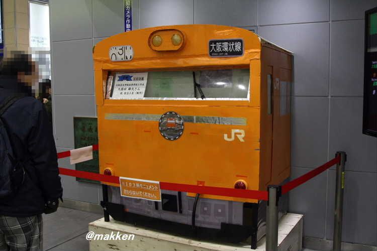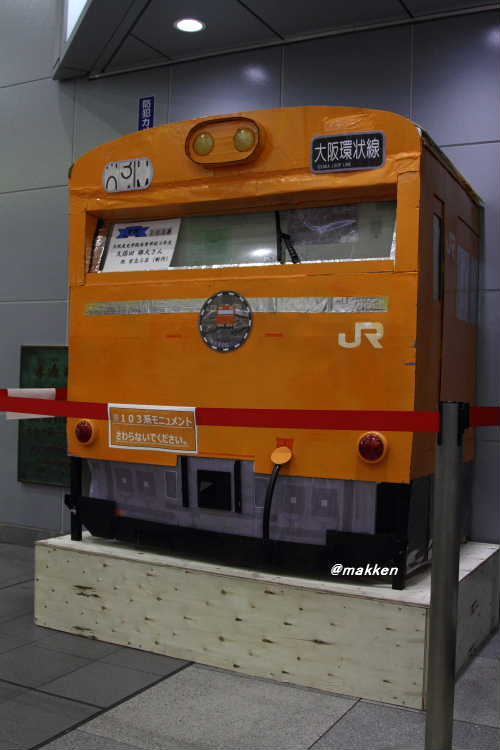 JR天王寺駅の中央改札口の北側に こんなオブジェがありました 製作したのは、駅の北側にある高校生たち6名 大阪環状線を走る103系 オブジェじゃなくてモニュメントでした <<戻る>>
