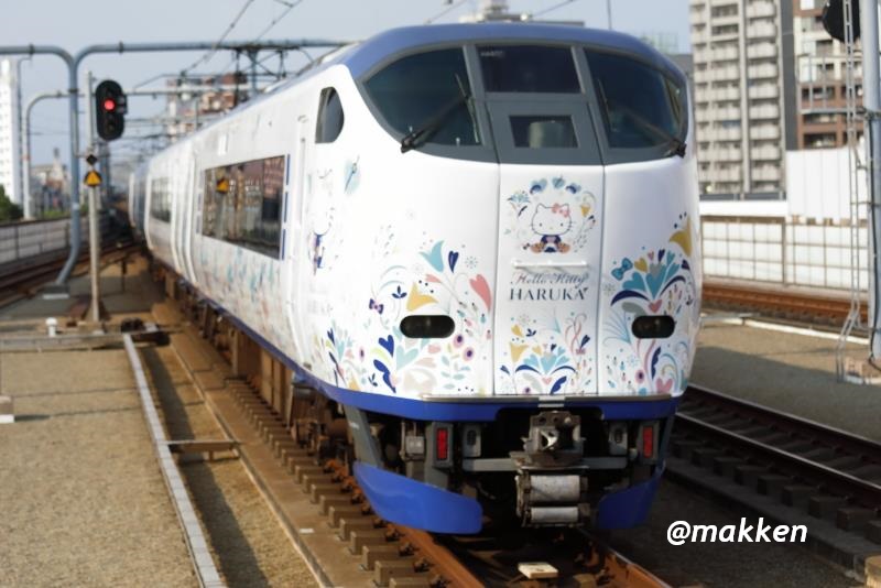 先頭は、271系の3両編成、後方は281系キティラッピングの6両編成